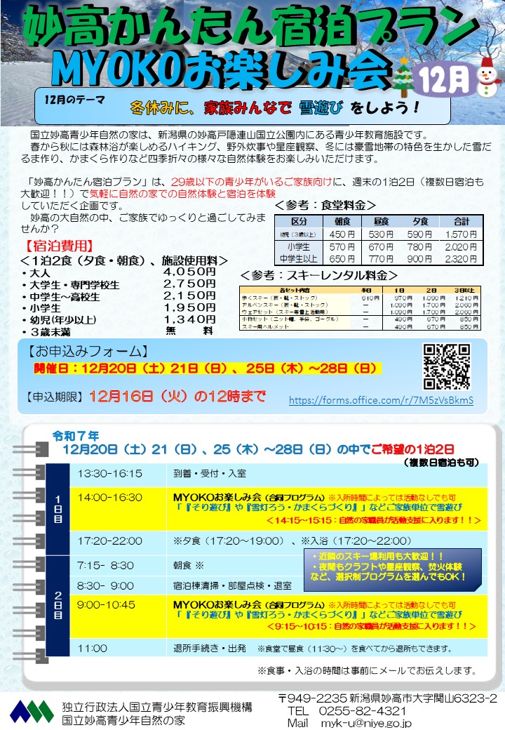 妙高かんたん宿泊プラン「12月のMYOKOお楽しみ会(雪遊び)」